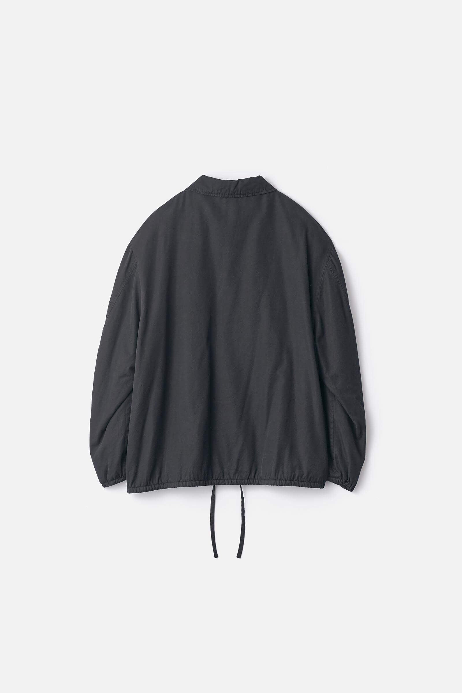 Coach jacket made from high density Burberry fabric woven with 100/2 extra long cotton for the warp and 40/1 rayon for the weft.