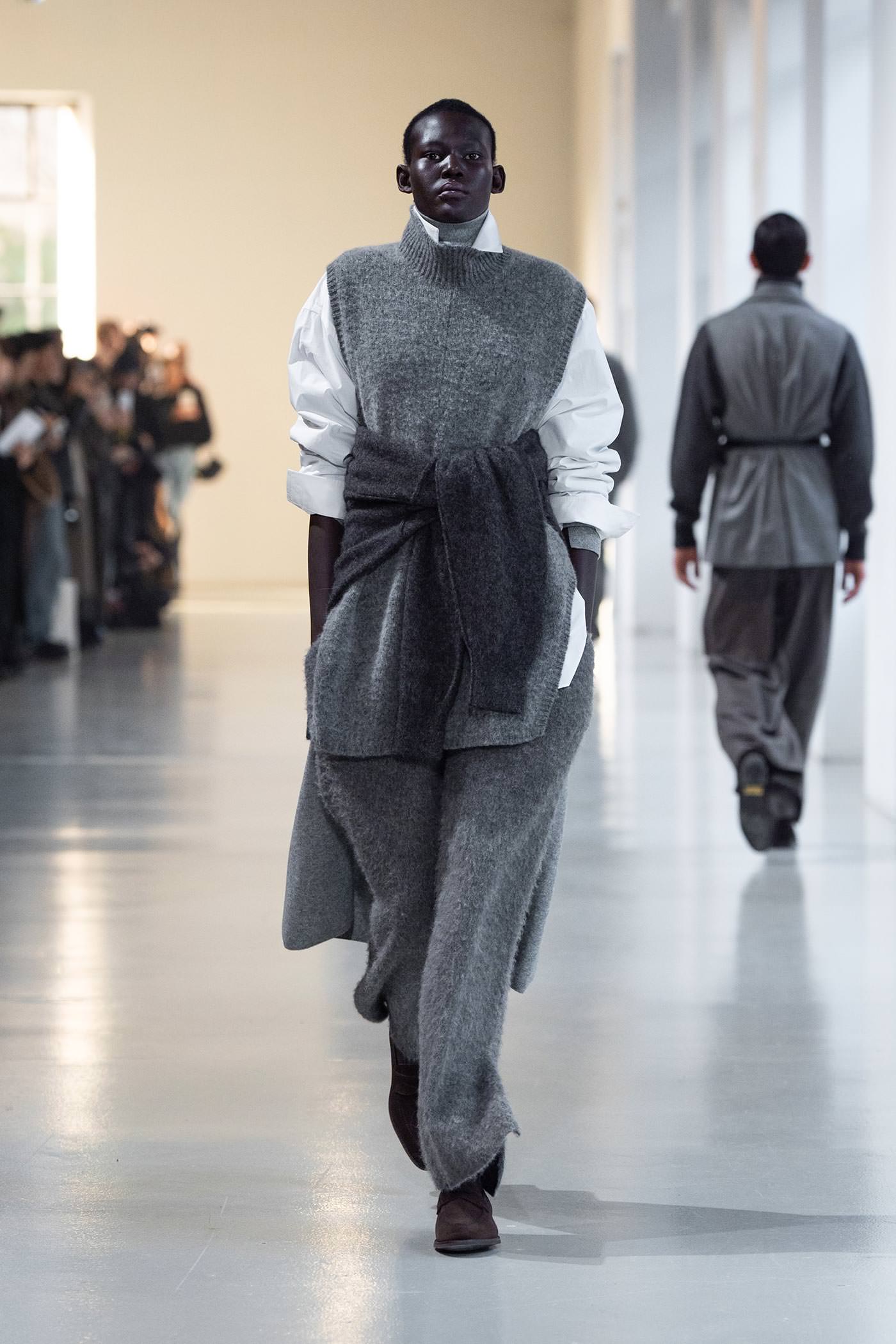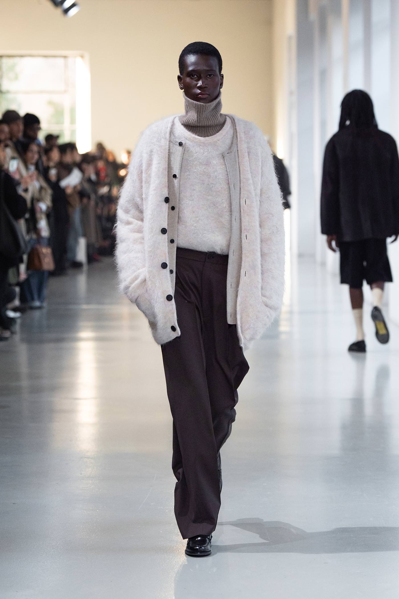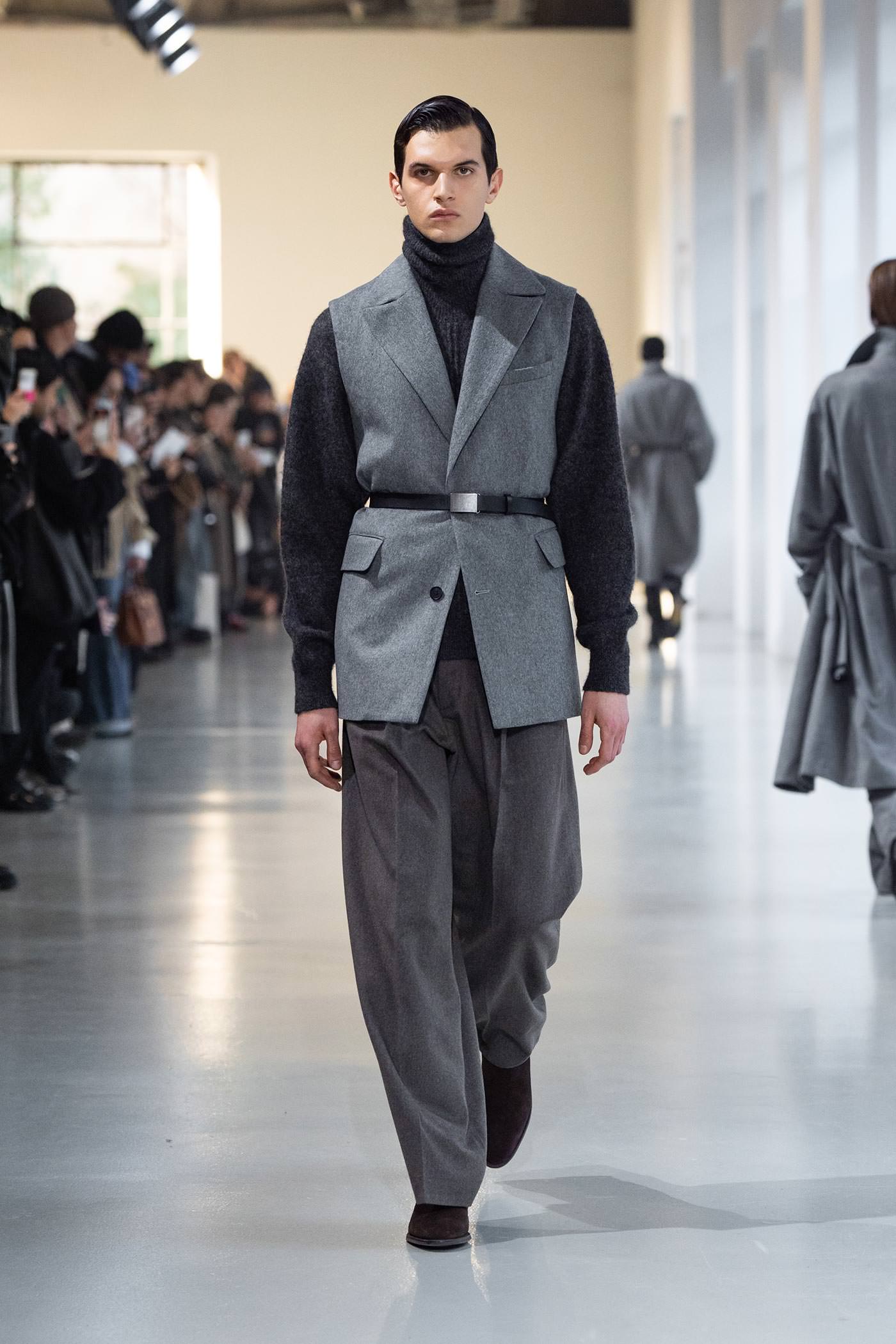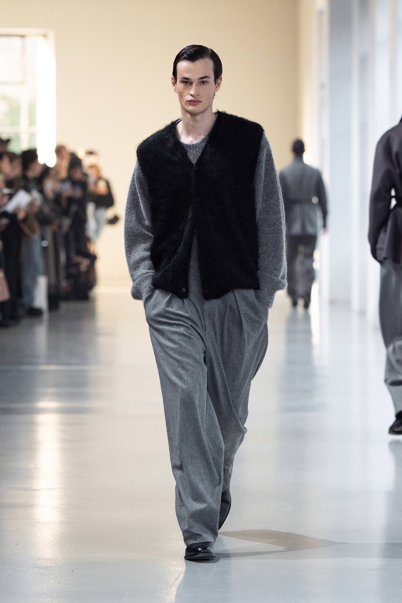 EXTRA FINE WOOL KNIT SLIT ONE PIECE WOOL DOESKIN FLARE TROUSERS