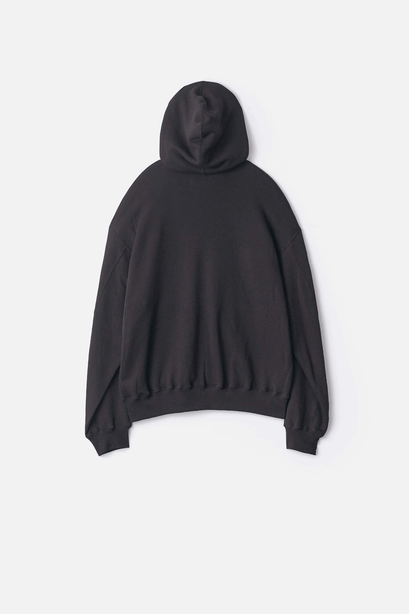 Zip hoody made from fabric featuring a blend of cotton and cashmere in the face yarn, characterized by cashmere’s unique soft touch and subtle surface luster.