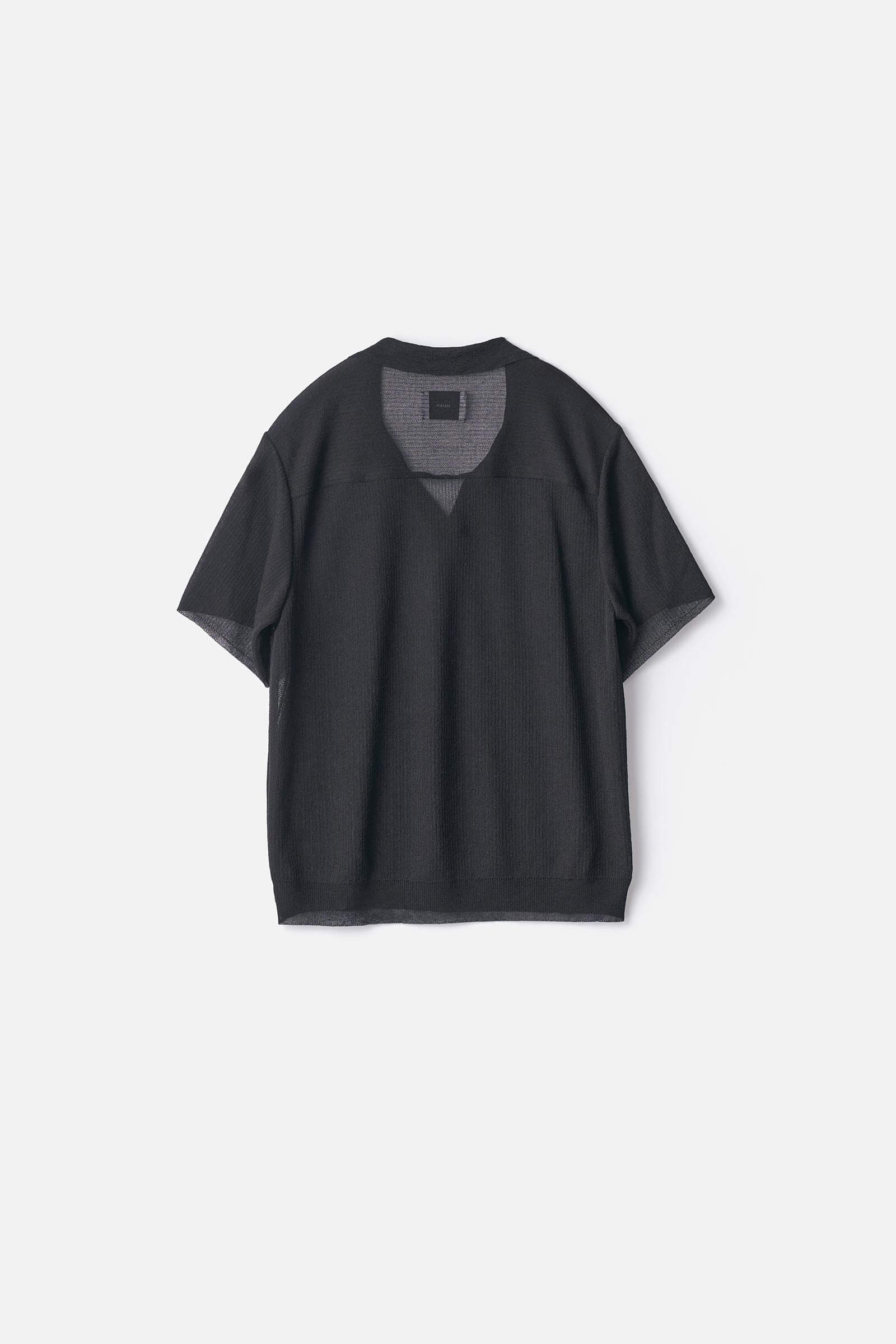 Short sleeve knit skipper crafted from a lightweight blend of linen and polyester, characterized by its translucency, dry touch, and refreshing feel.