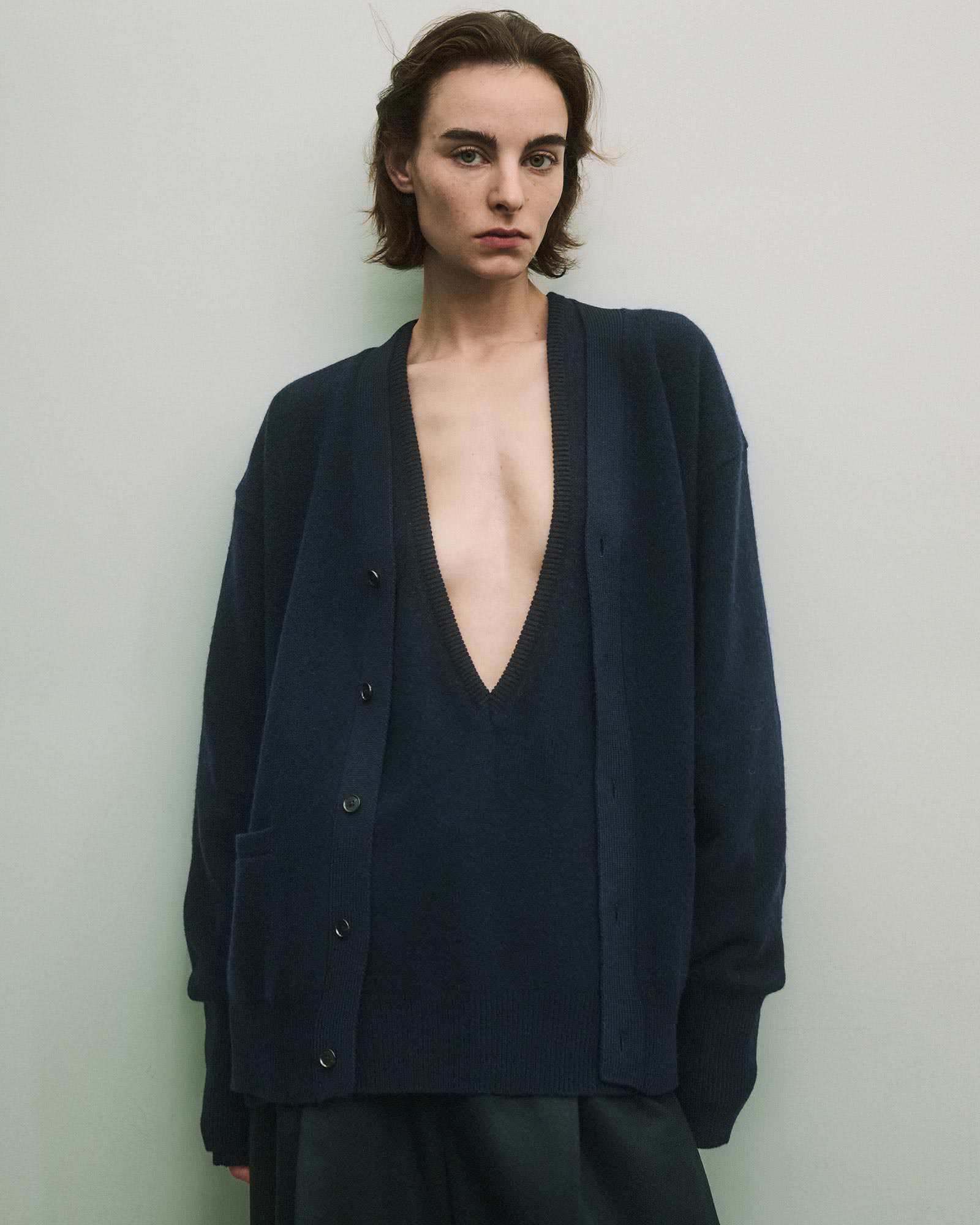 EXTRA FINE WOOL KNIT DEEP V NECK LS