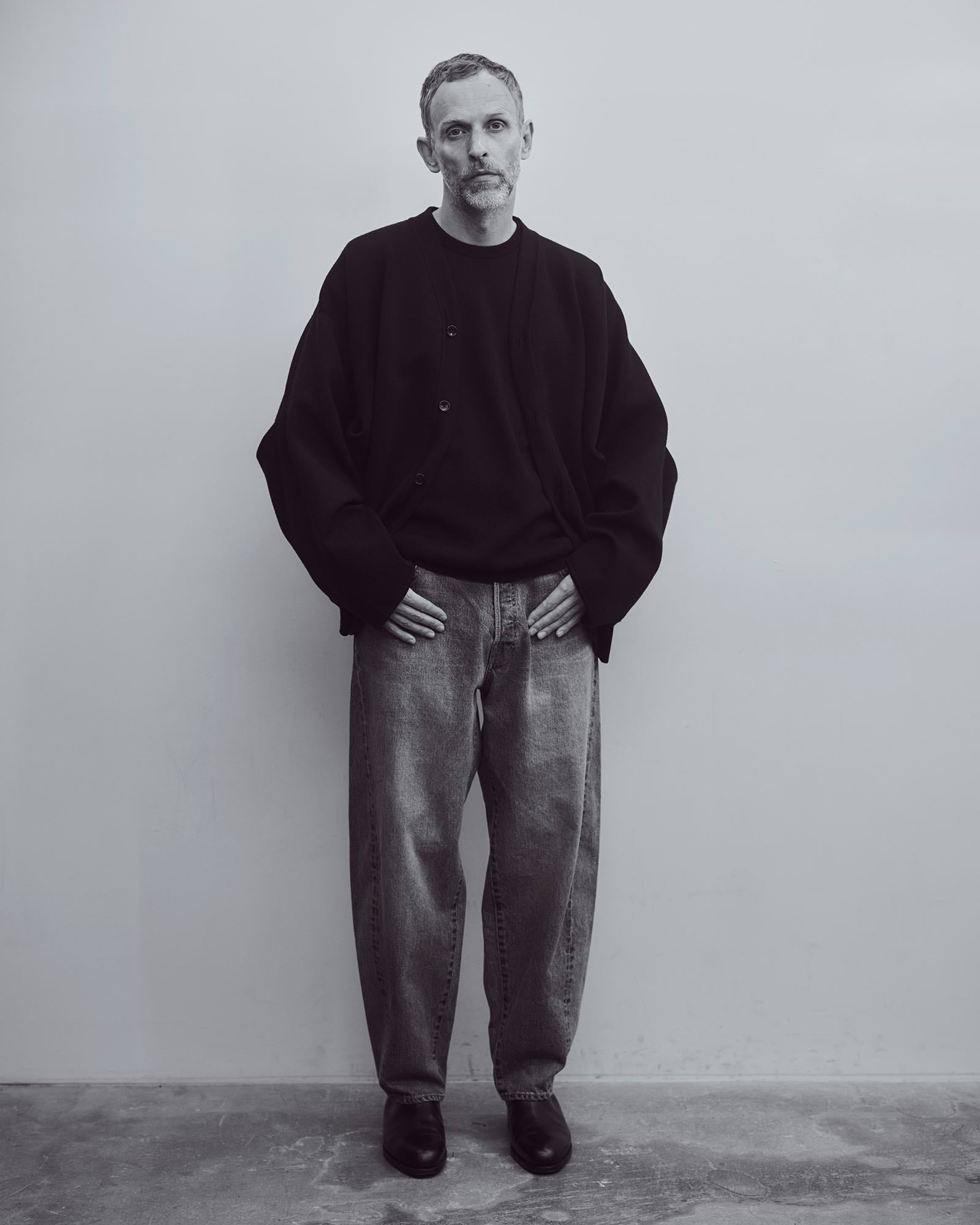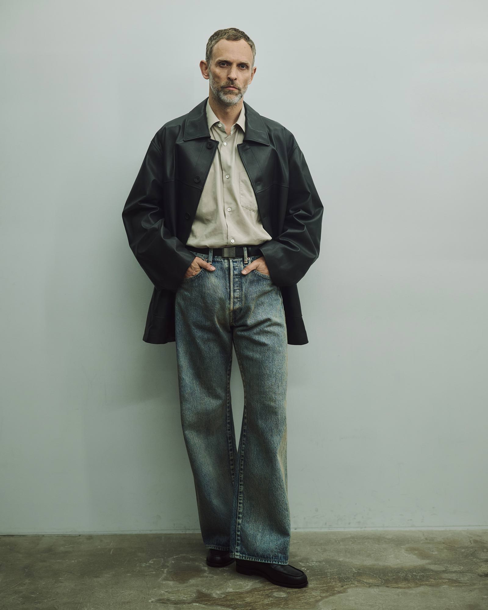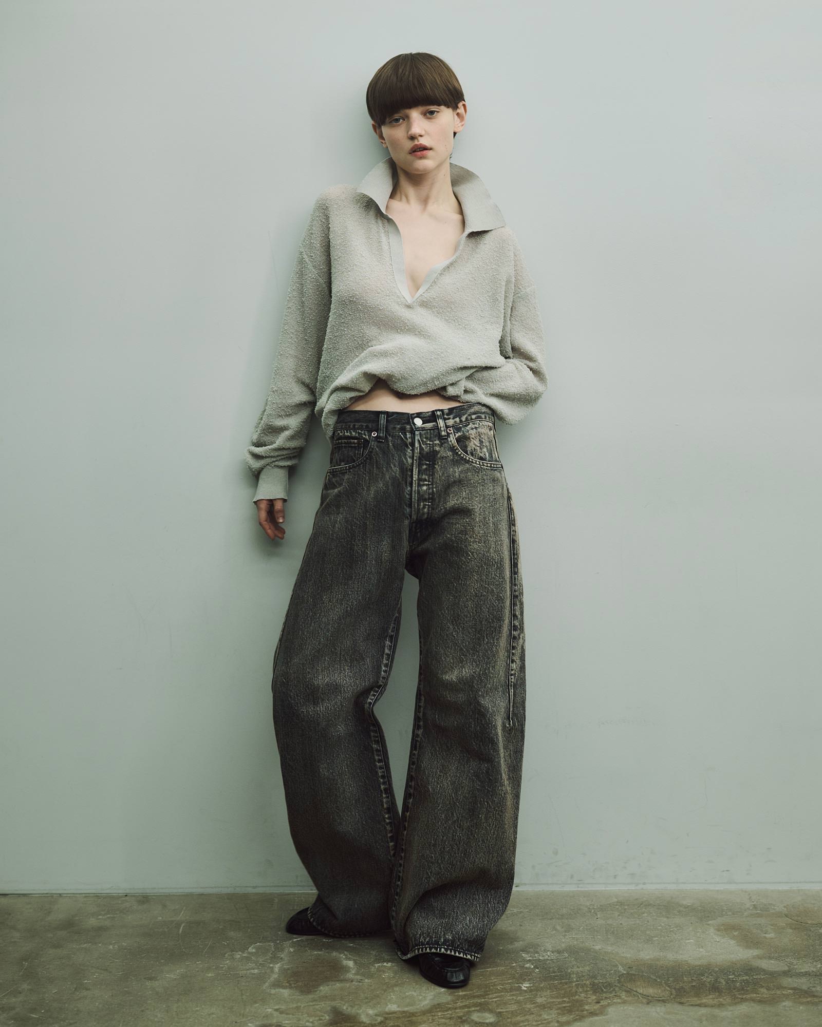 WOOL SILK KNIT TUCKED LSDEFORMED FLARE VINTAGE DENIM JEANS
