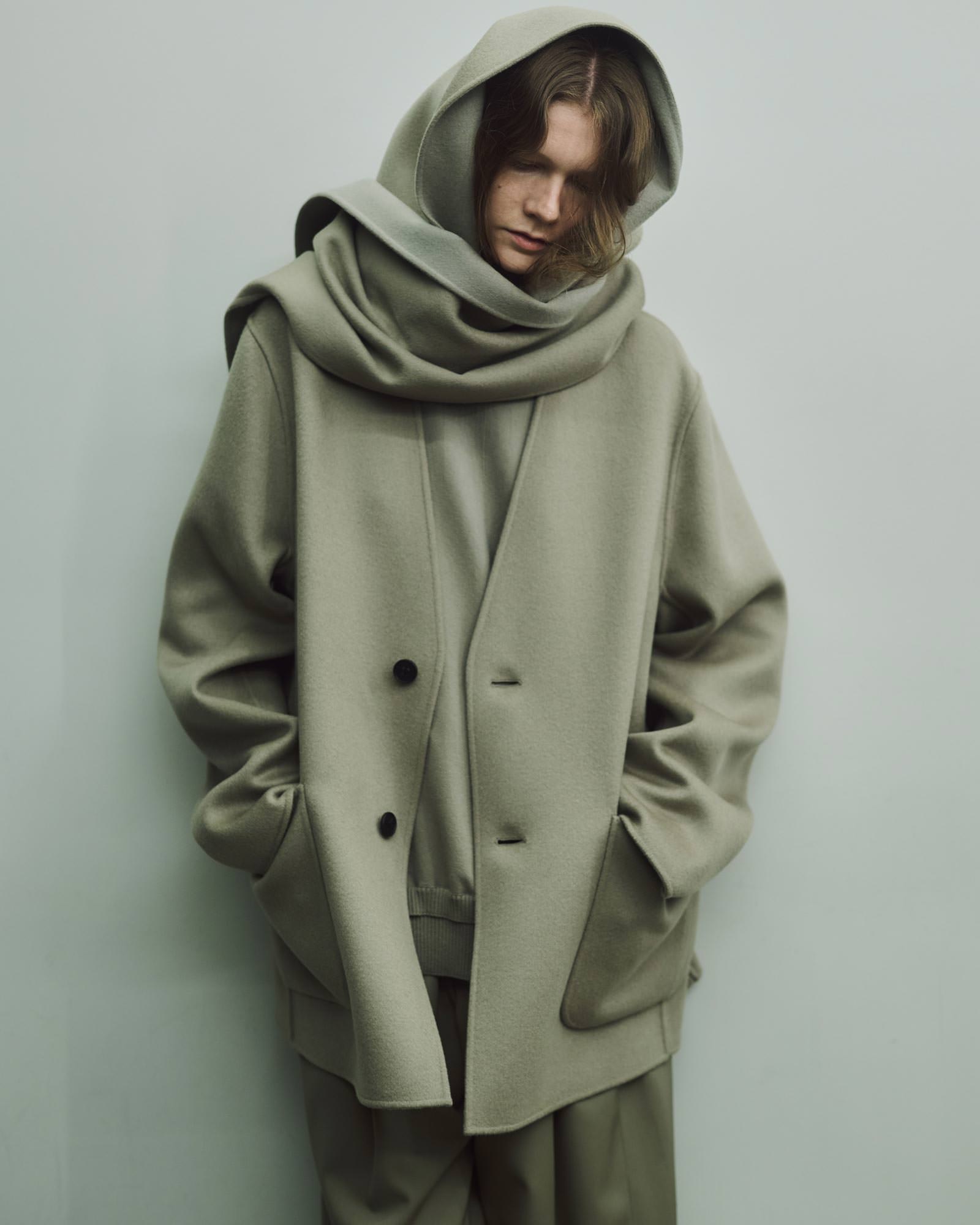DOUBLE WEAVE HOUNDSTOOTH PEAK LAPEL SHORT COAT