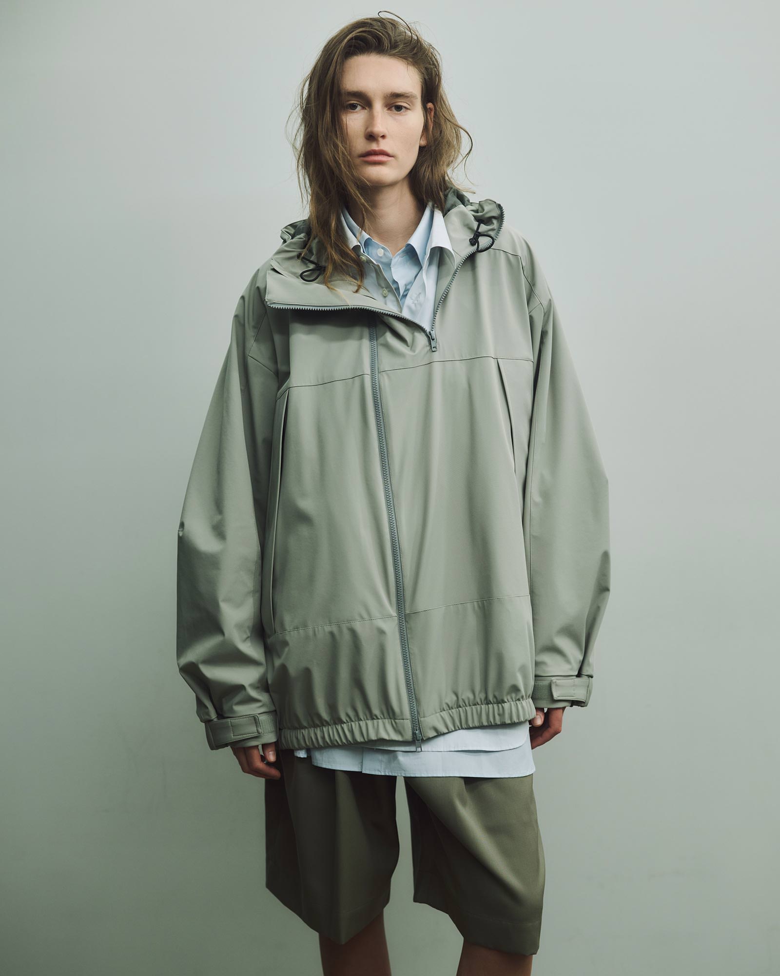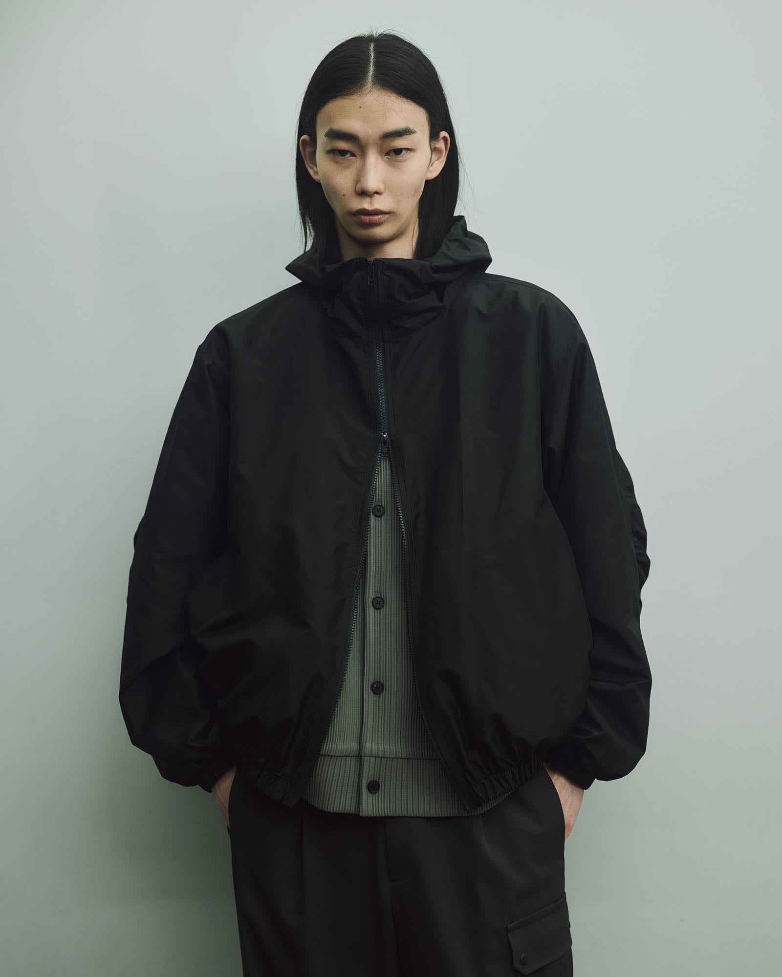 EXTRA LIGHT NYLON SHIRRED ZIP HOOD JACKET