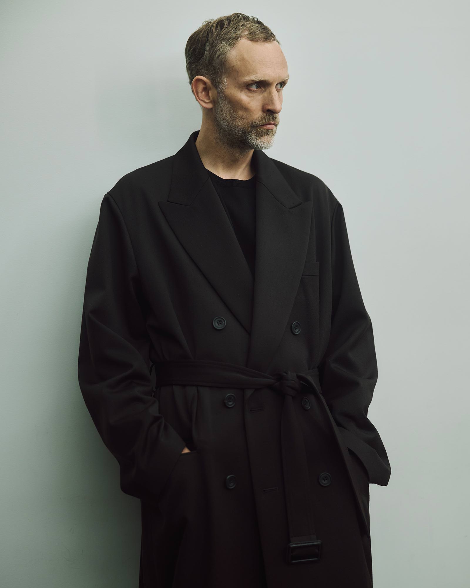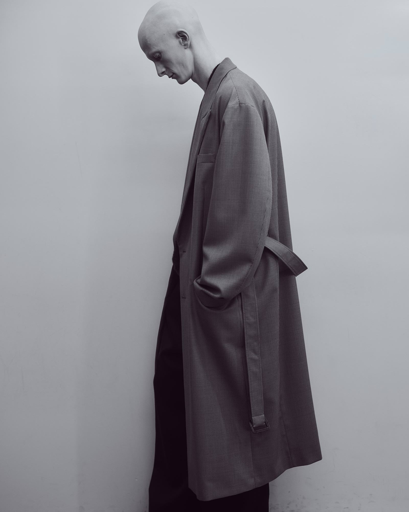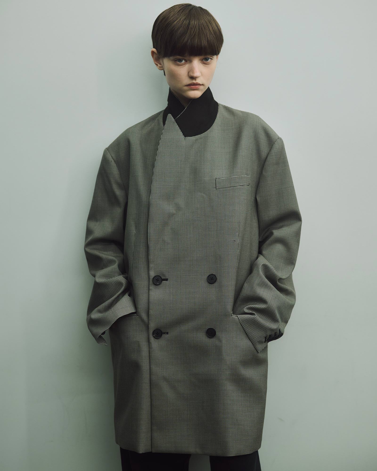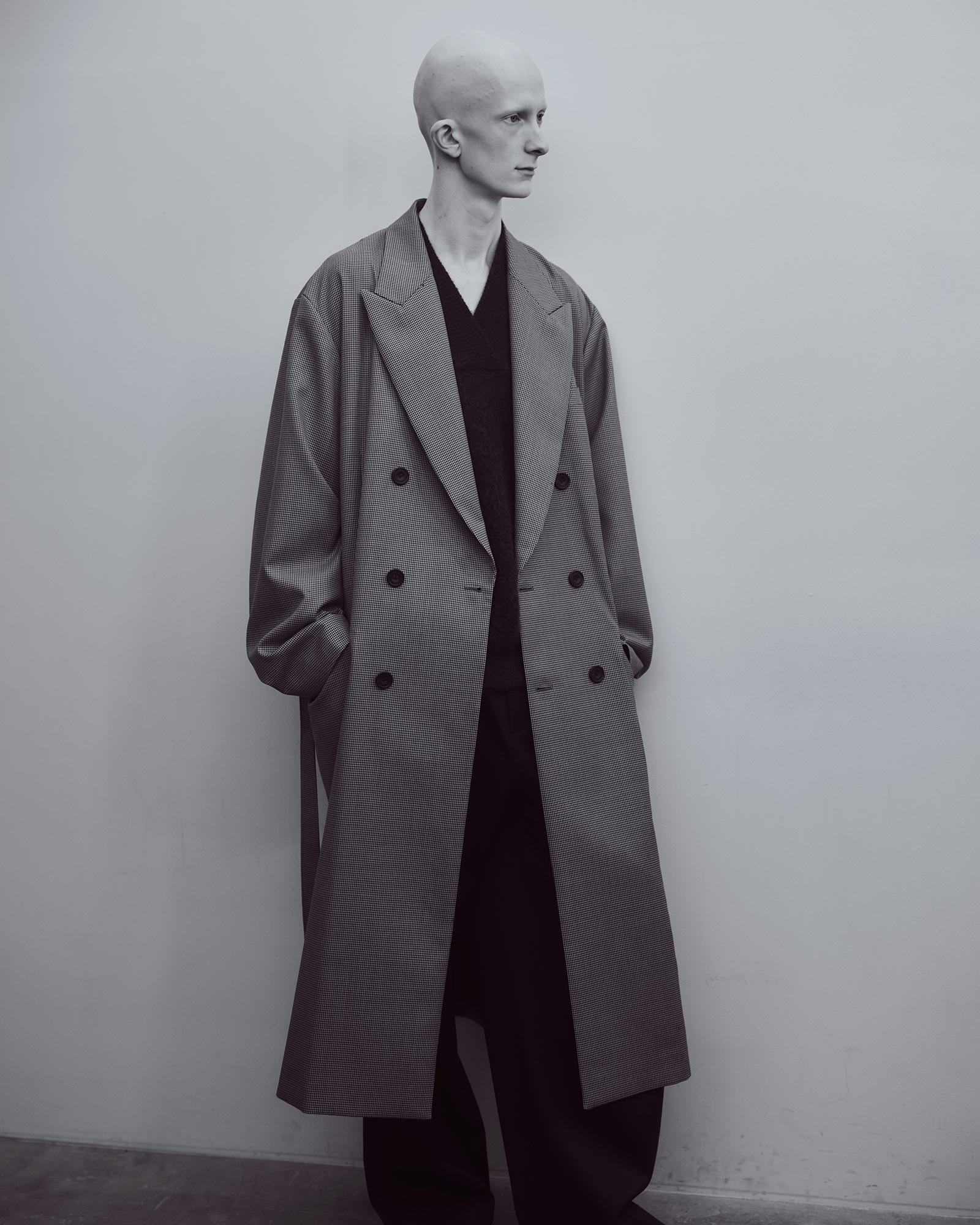 DOUBLE WEAVE HOUNDSTOOTH PEAK LAPEL LONG COAT