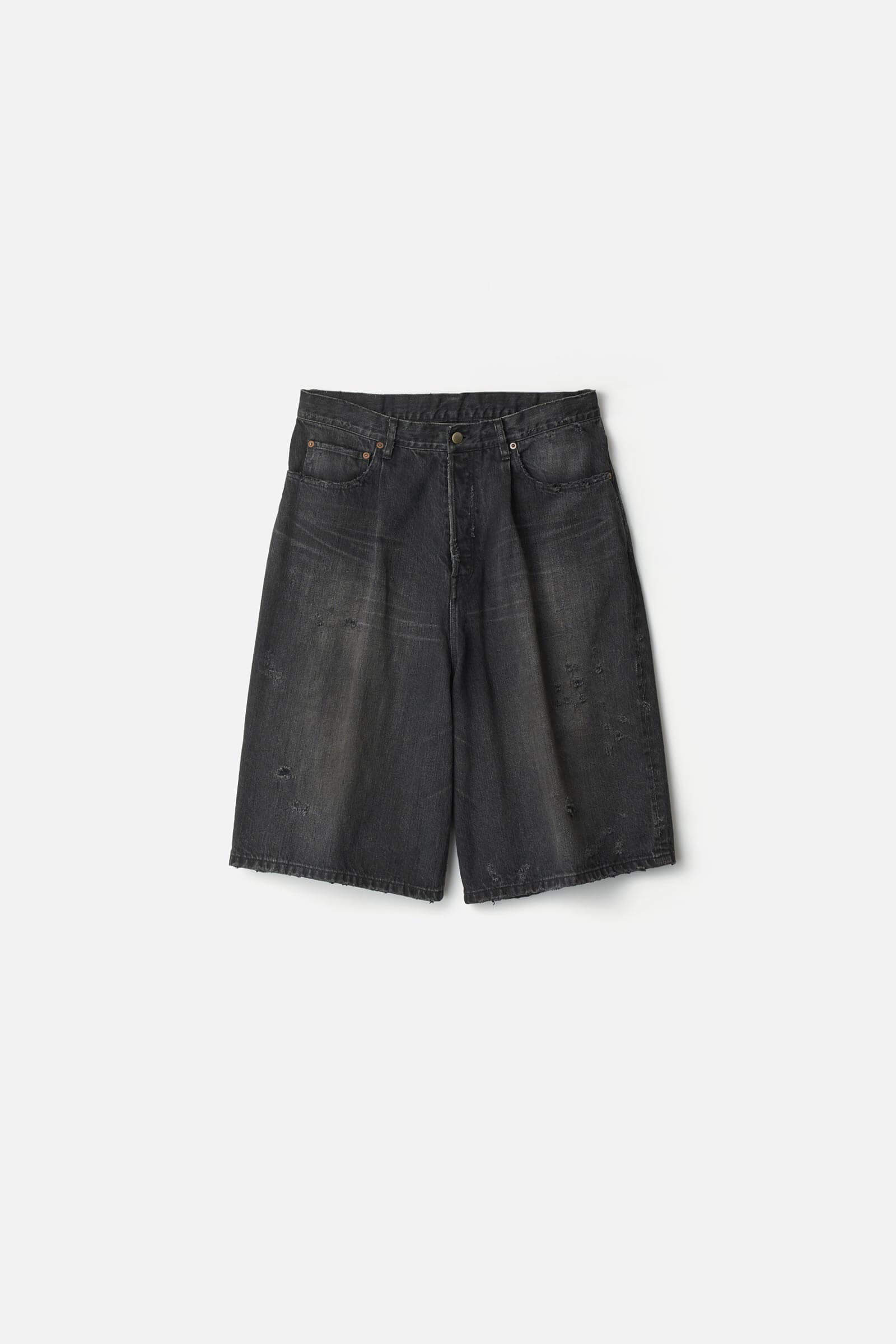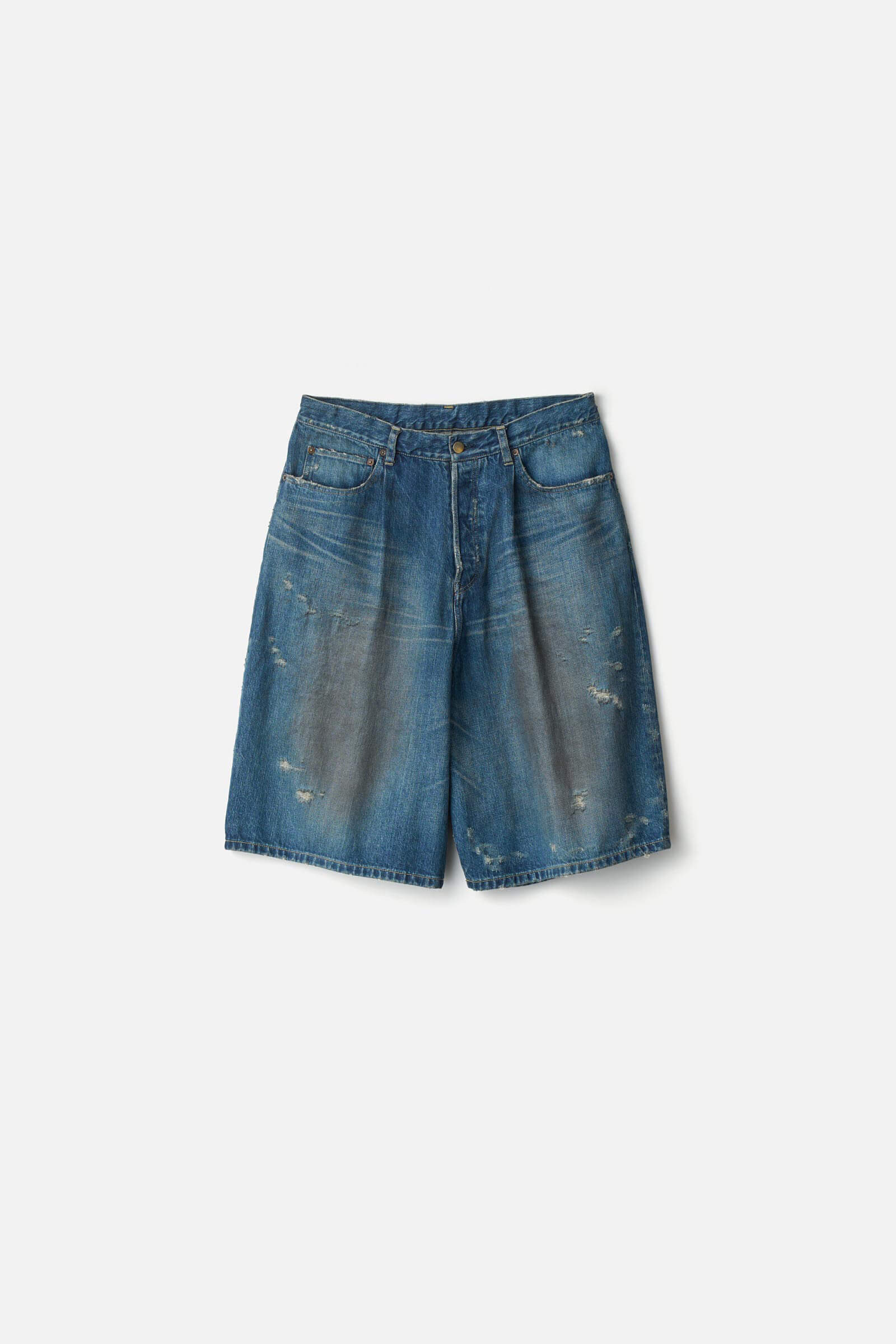 深く設定した股上、長めのレングスのワイドシルエットが特徴のバギーショートデニム。
