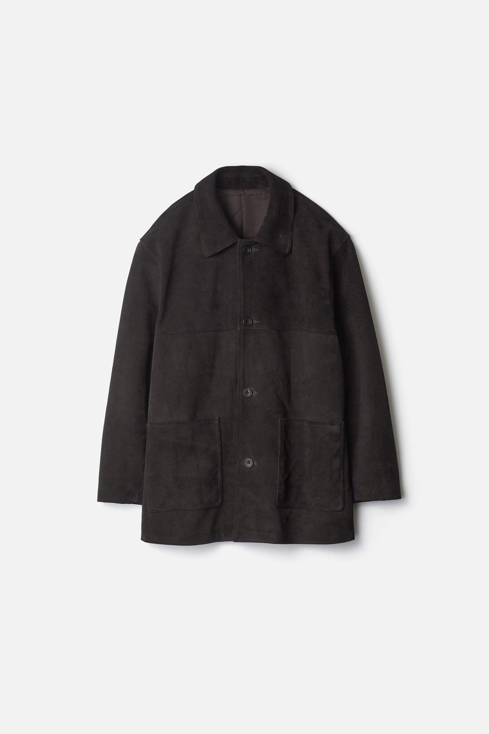 柔らかく、しなやかな風合いの牛革スエードを使用したカージャケット。