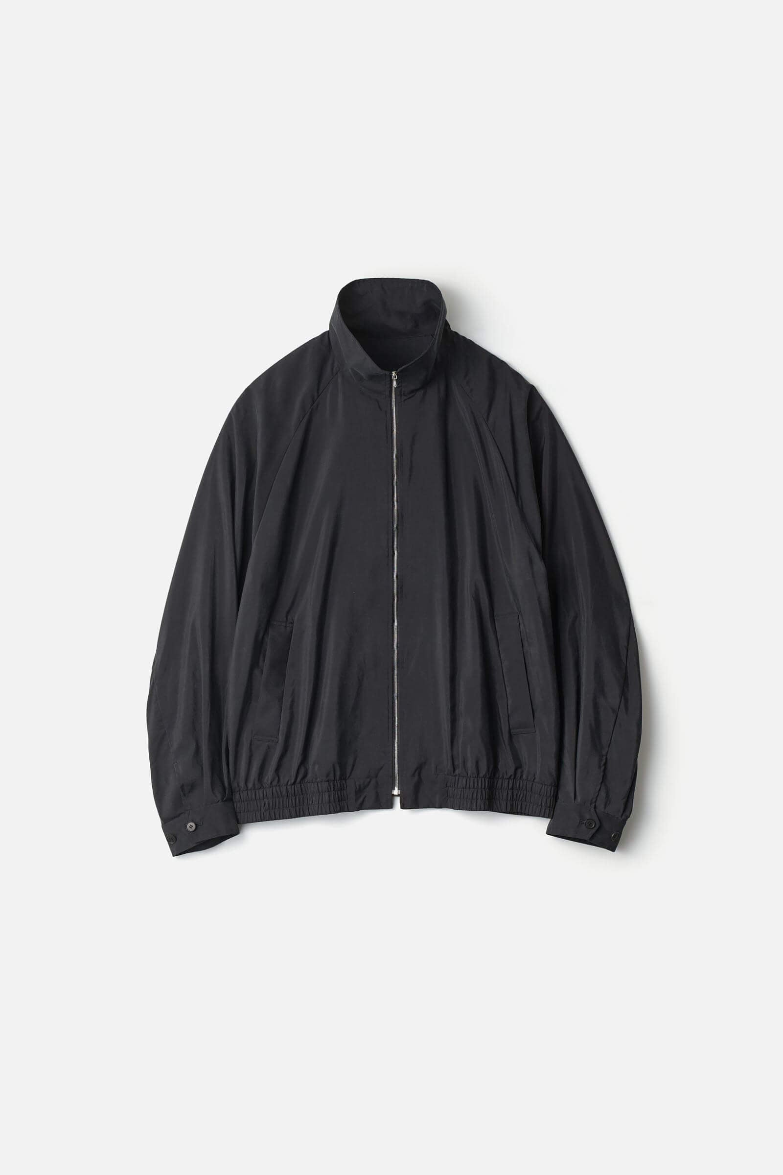 染色後にサンドウォッシュを施し、シルクの糸のフィブリル現象を利用したピーチタッチのオリジナルシルクナイロン地で製作した、ジップブルゾン。